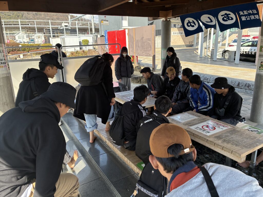 2026年03月9日、研修の一環として、石和温泉駅へ行きました。足湯(石和温泉駅)も体験し、日本の生活文化について学びました。また、交通系ICカード(Suica)の使い方や、足湯(石和温泉駅)も体験し、日本の生活文化について学びました。また、交通系ICカード(Suica)の使い方や電車の乗り方に加え、公共交通機関を利用する際のマナーについても学習しました。その後、イオンモール甲府昭和に移動し、買い物や日常会話の練習を行いました。研修センターへ戻った後は、学んだ内容について会話テストを実施し、理解を深めました。