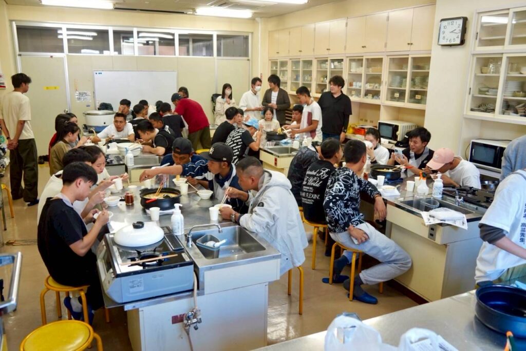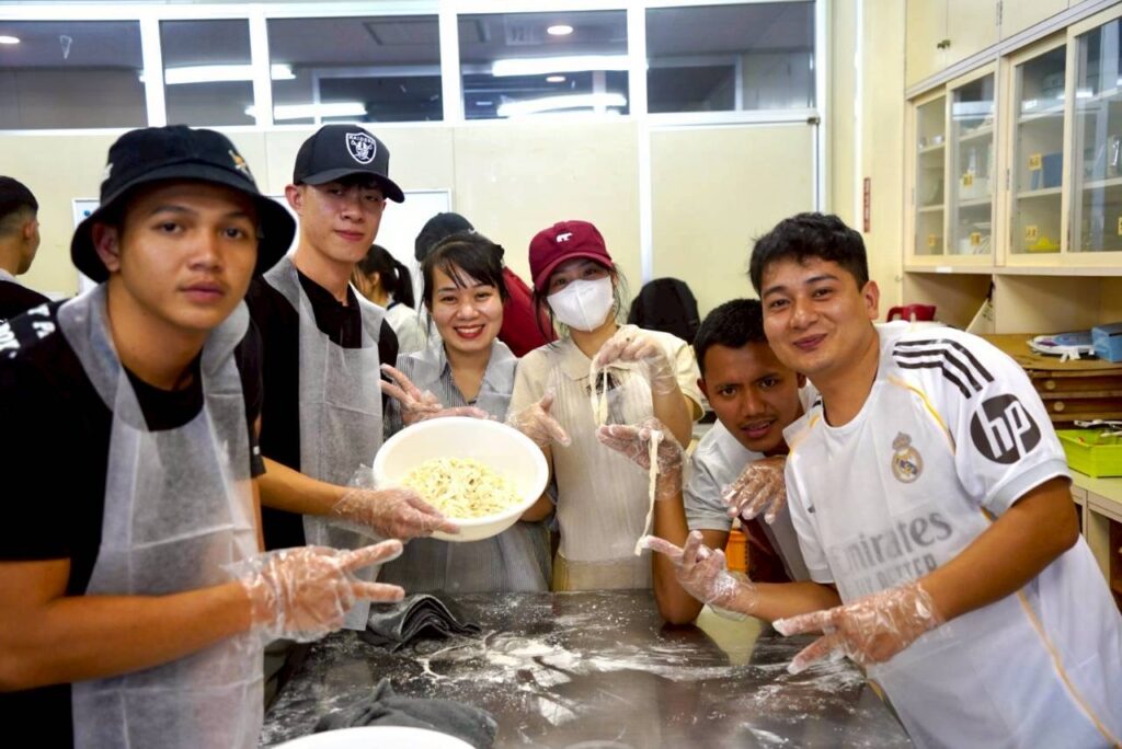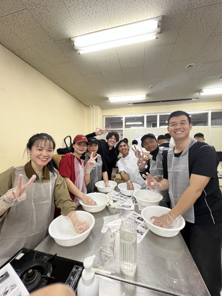 本日研修センターの近くにある公民館の料理室を利用し、高菜先生と連携し、ほうとう体験を行いました。学生合計30名で参加し、日本に来たばかりなので凄く良い経験になりました。皆さんから大評価頂きました。
